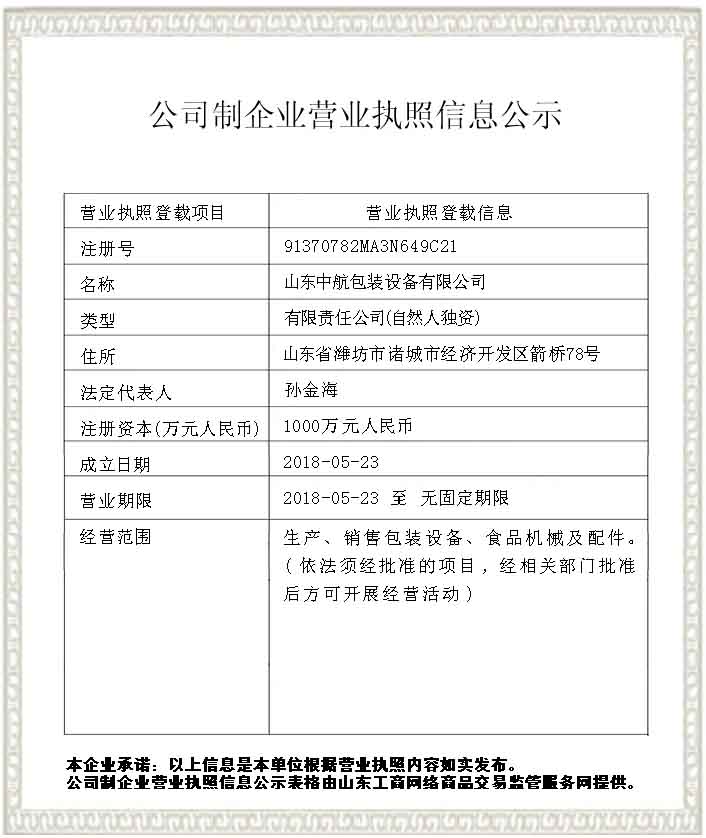山東中航包裝設(shè)備有限公司